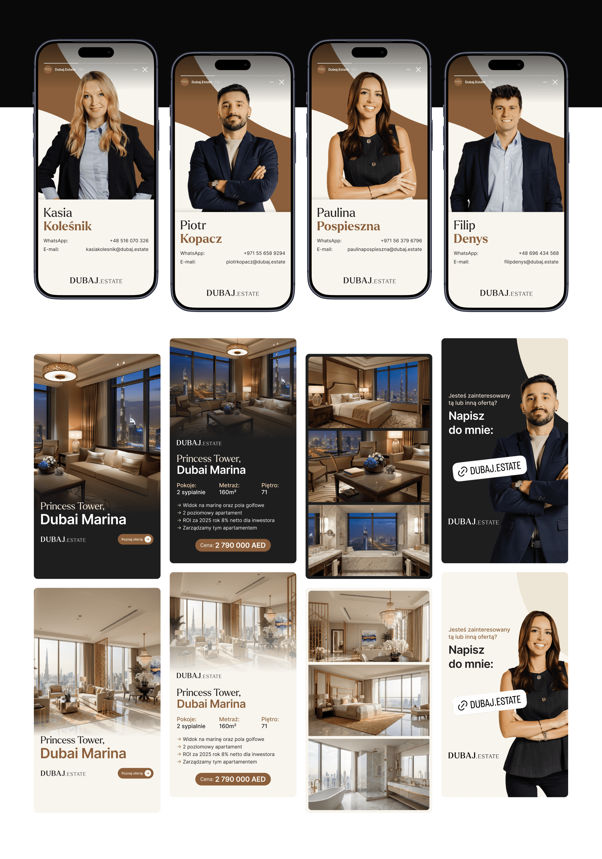 Dubaj.Estate launched as a complete, market,ready brand with a clear identity and a consistent voice across every touchpoint. The visual system works equally well on a street banner, a business card and an Instagram post, giving the brand the flexibility it needs to grow. More importantly,